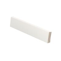 Valkoiseksi maalattu mäntyinen jalkalista